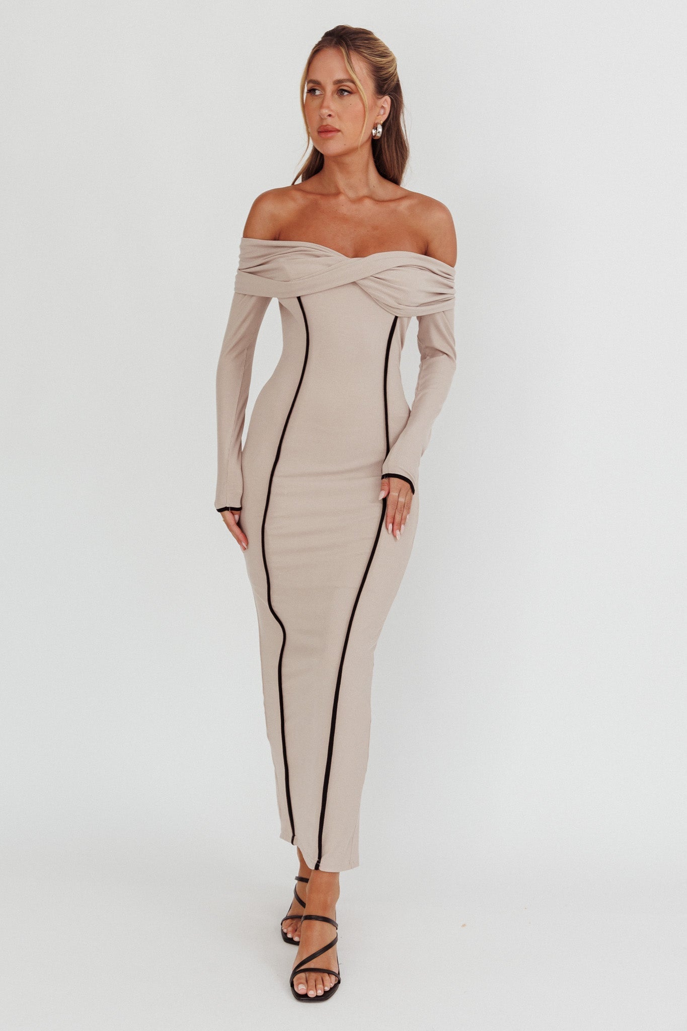 Steal the spotlight in our gorgeous Genesis maxi dress. It features an off-shoulder style and contrasting piping trim detail. Wear it to a birthday soiree or a flirty date night! Team it with strappy, black heels and a clutch for an unforgettable look.