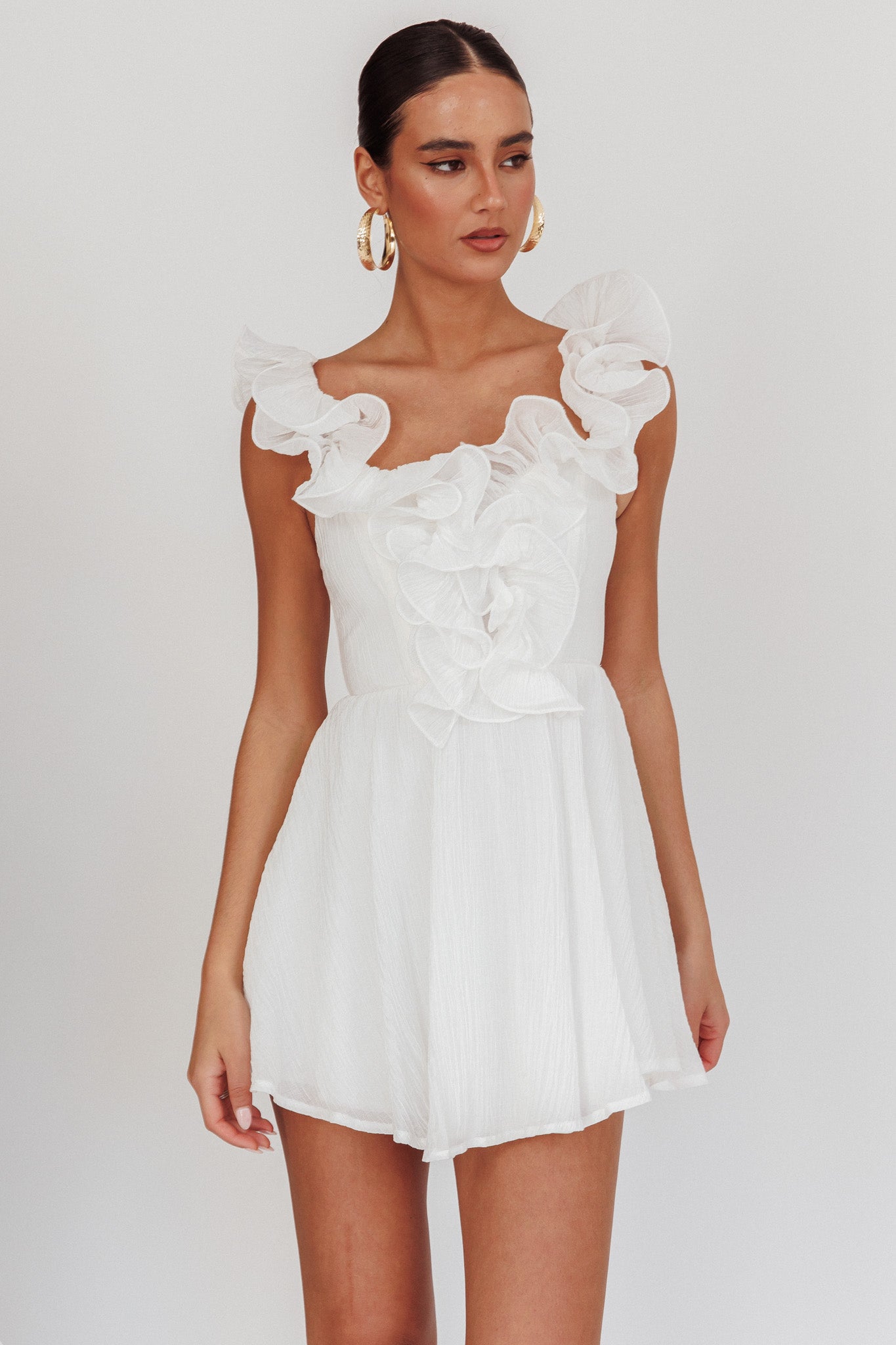 Hello, gorgeous! You will feel like a princess in our pretty Nivaya mini dress. We are in love with its ruffle-trimmed neckline and A-line skirt that's perfect for a bridal shower or graduation. Team it with strappy, white heels and a simple clutch for an unforgettable look.